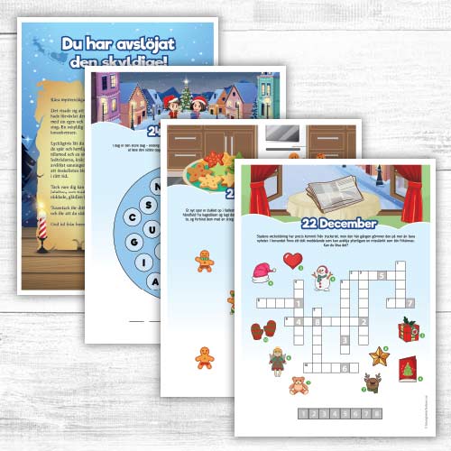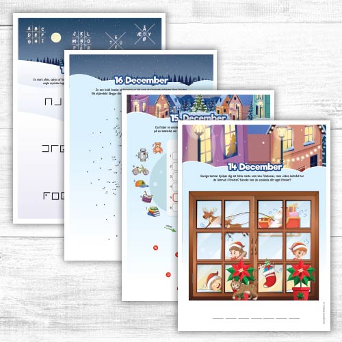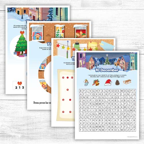 Julkalendern är mycket underhållande för hela familjen och passar från ca 8 år. Med lite hjälp kan yngre barn också delta.