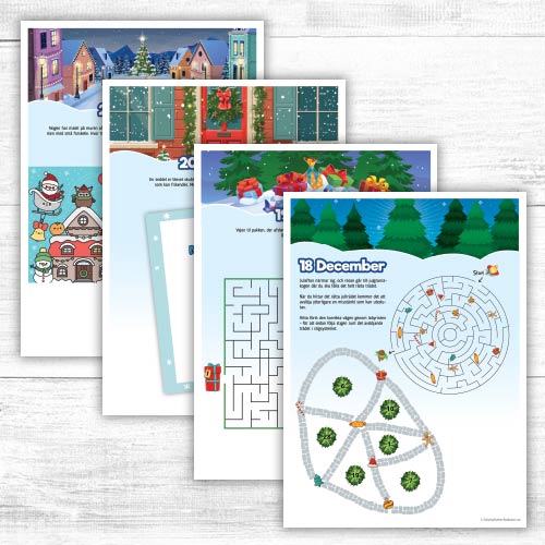Efter köpet hittar du på kvitto-sidan länkar till julkalendern, som du även får via e-post. Länkarna är tillgängliga i 14 dagar, så glöm inte att ladda ner dem lokalt. Då kan du skriva ut den obegränsat många gånger.